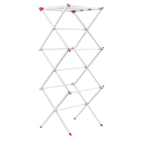 Russell Hobbs LA083357PINKEU7 tvättställ – 3 nivåer inomhus torkställ, hopfällbar klädhäst, stort 15 m lufttorkutrymme, hopfällbar kompakt förvaring, stående ställ, fällbara hängare krokar, rosa/grå
