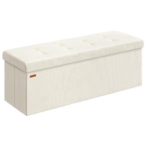 SONGMICS Fotpall med förvaring, Hopfällbar bänk, 38 x 110 x 38 cm, Fotstöd, Dagbädd, Förvaringslåda, Maximal belastning 300 kg, Vardagsrum, Sovrum, Hall, Pastellrosa max 300 kg, krämvit LSF604W01