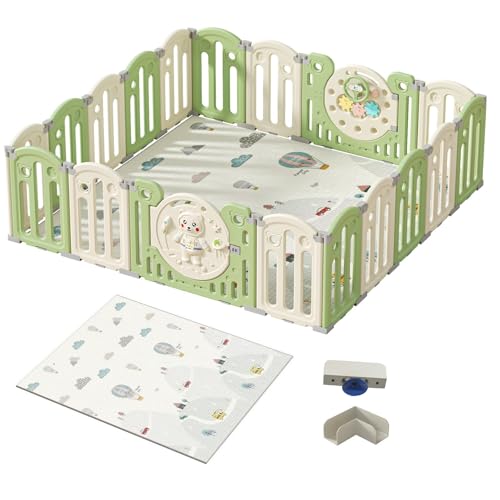 Gcarebb Babypark med uppvakningsmatta, XXL hopfällbar barnpark, säkerhetslås, justerbar form, hopfällbar förvaring, halkfri, babybarriär (14 16 18 paneler)