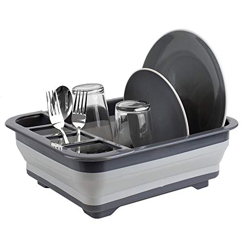 Home Basics silikon och plast enkel förvaring hopfällbar diskställ med bestickhållare (grå)