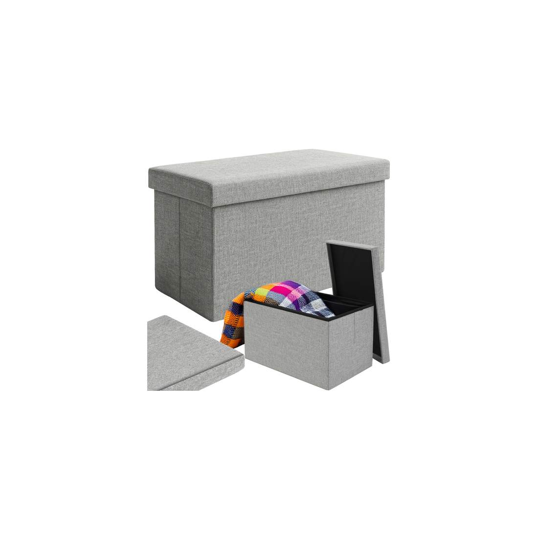 Relaxdays hopfällbar ottoman, HxBxD: 49,5 x 46 x 25,5 cm, med förvaring, hopfällbar fotpall, linne, polyester, MDF, mörkgrå