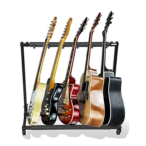 Gitarrstativ, gitarrställ, 5-vägs gitarrstativ stativ stativ, gitarr hopfällbar bärbar förvaring organiserare display dekoration för alla typer svart