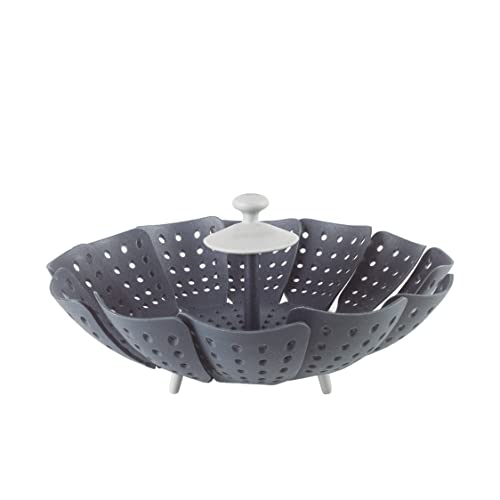 Lacor - 60288 - Förlängbar ångbåt med blomform, Självjusterbar design och kompakt förvaring, hopfällbar, Polypropylen - BPA-fri, Grå