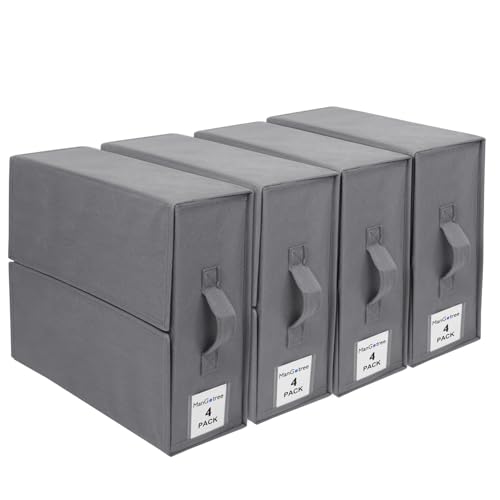 ManGotree Lakanordning och förvaring, hopfällbar garderobsorganisatör för sängkläder, lakan förvaringslåda med handtag och etikett, sängförvaring för täcken, filt, örngott, 4-pack grå