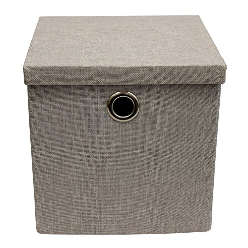 JVL hopfällbar förvaringsbox i lock i tyg med kromhandtag, kräm, fler/färg 30 x 30 x 28 cm Ljusgrå