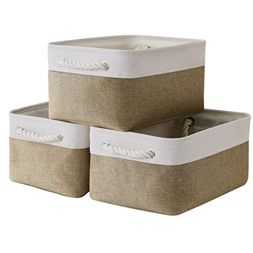 TheWarmHome Förvaringskorg för organisering – 35,5 x 25,4 x 17,78 cm, medium 3-pack hopfällbar förvaringsfack för hyllor med handtag, dukar förvaringsbox för organiseringskuber, tyg, presentleksak,