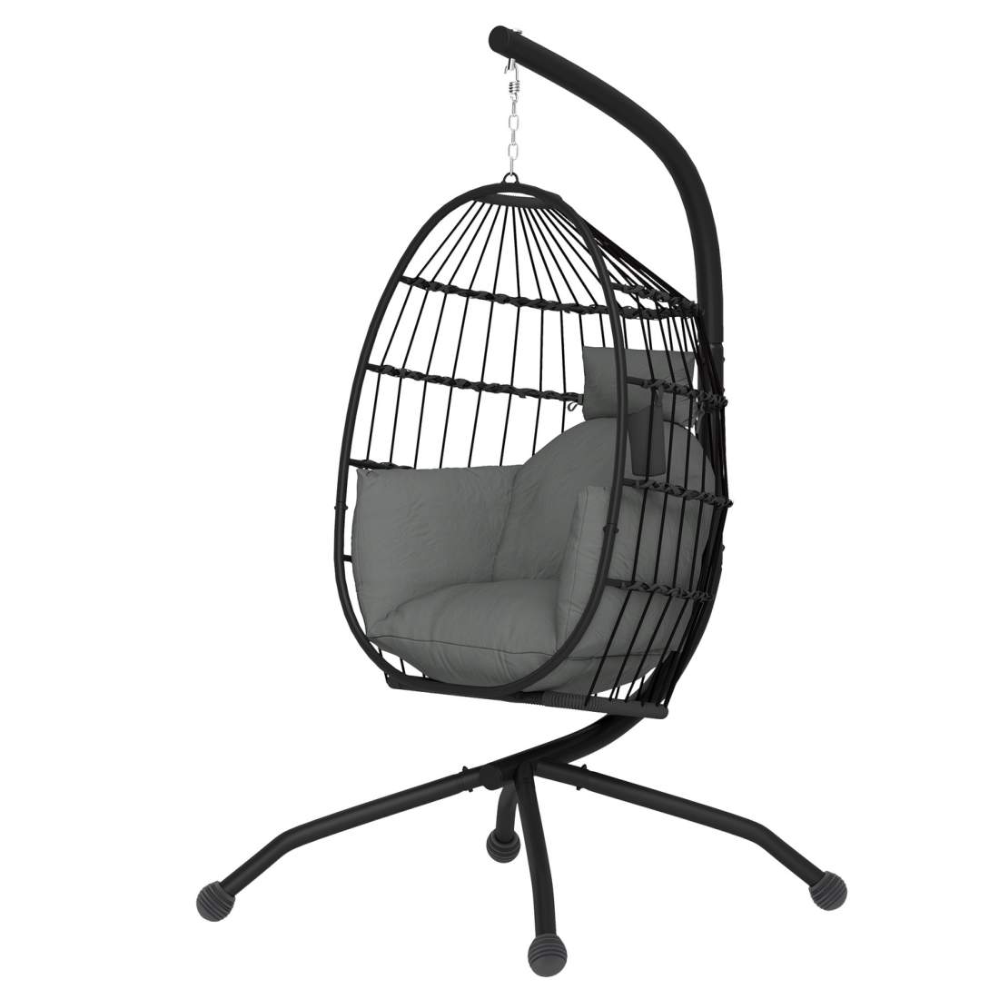 Äggformad utomhushängande stol, hopfällbar hänggunga med mugghållare, avtagbar tvättbar sits, ram, hängmatta för 1 person, gungs