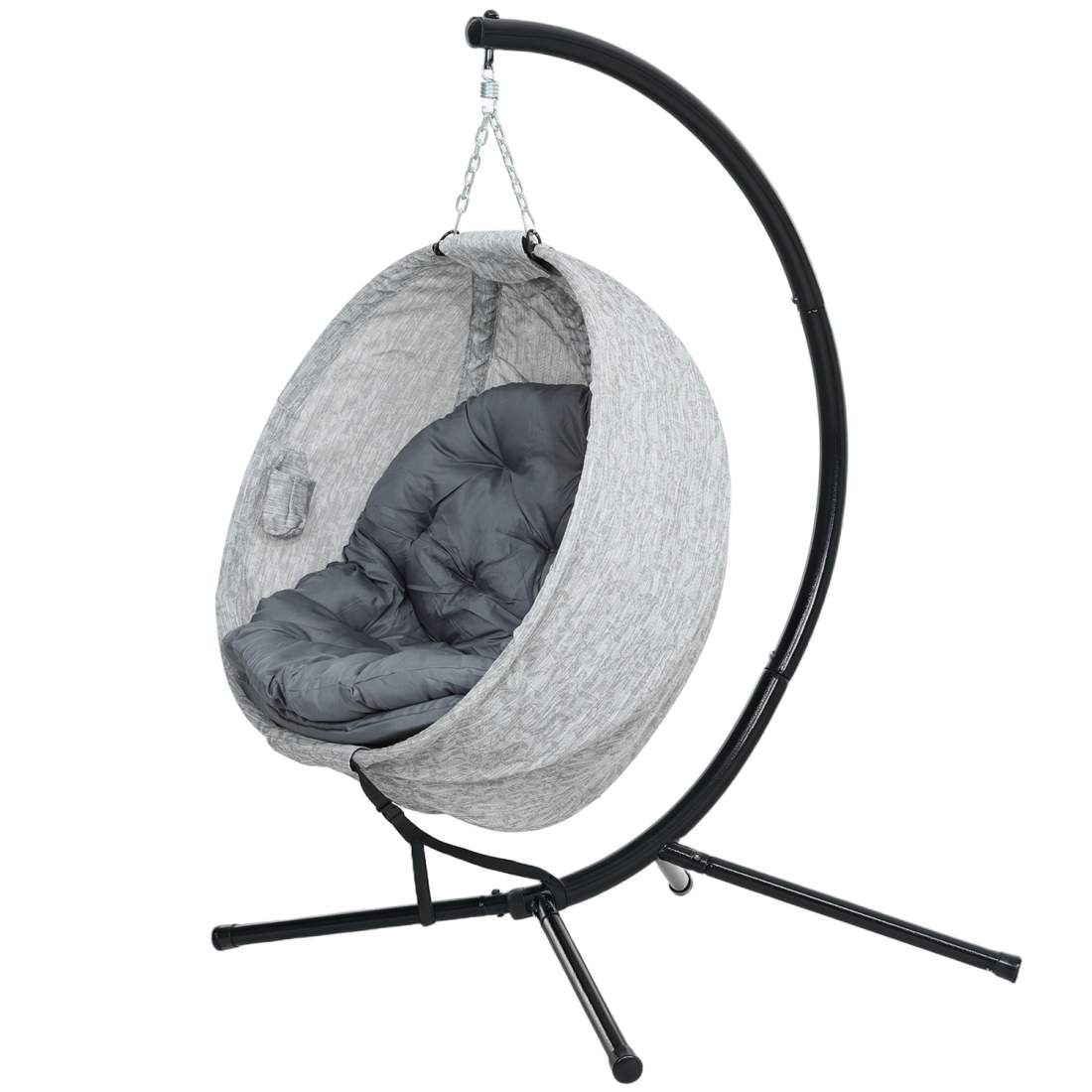 Äggformad utomhushängande stol, hopfällbar hänggunga med mugghållare, avtagbar tvättbar sits, U-ram, hängmatta för 1 person, gun