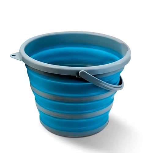 Hopfällbar hink 10 l, vikbar hink, rund blå/grå mopphink för rengöringsverktyg, idealisk för resor och fiske, platsbesparande design av Zuvo