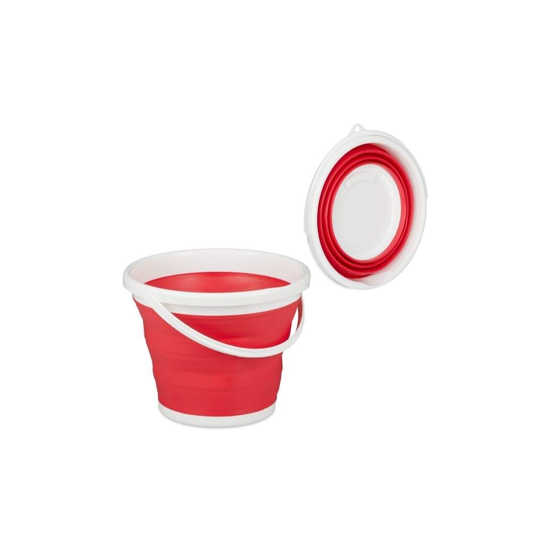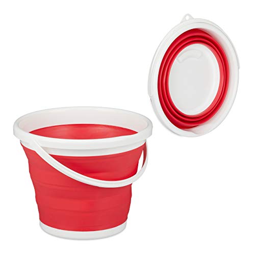 Relaxdays hopfällbar hink, 10 l moppfack, hopfällbar för bil, camping och festivaler, röd, PP, TBR, 1 artikel