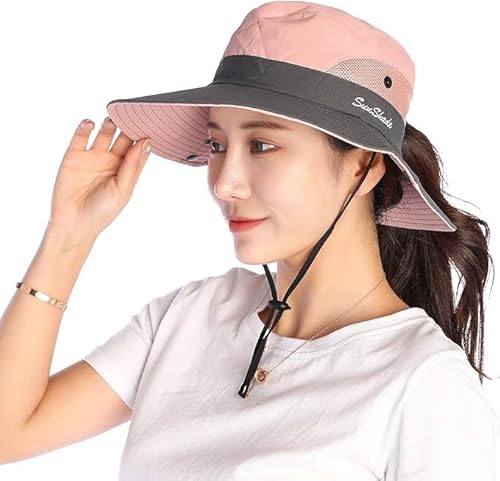 VICSPORT Solhatt Kvinnor UV-skydd Hatt Bred Kulle Mesh Hopfällbar Hästsvans Hink Fiskehatt Strandkeps för Vandring Trädgårdsarbete Utomhus
