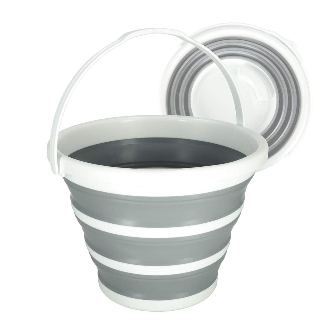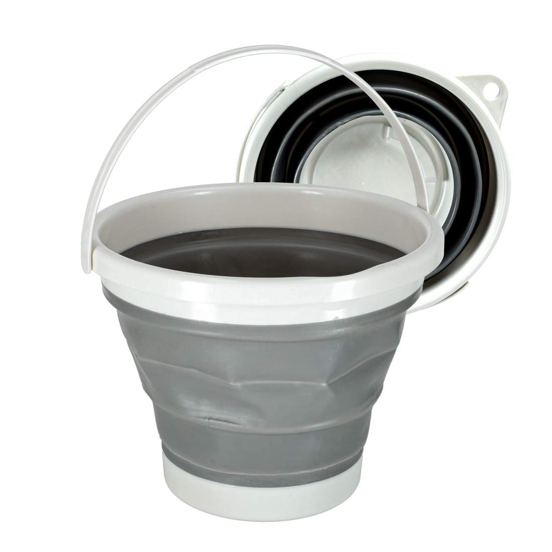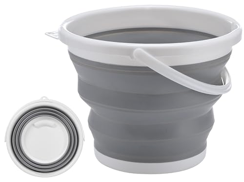 NEEZ Silikon Hopfällbar Hink – 10L Vikbar Hink med Handtag – Mångsidig Hopvikbar Hink för Camping, Tvätt, Fönsterputs & Utomhusbruk (Grå)