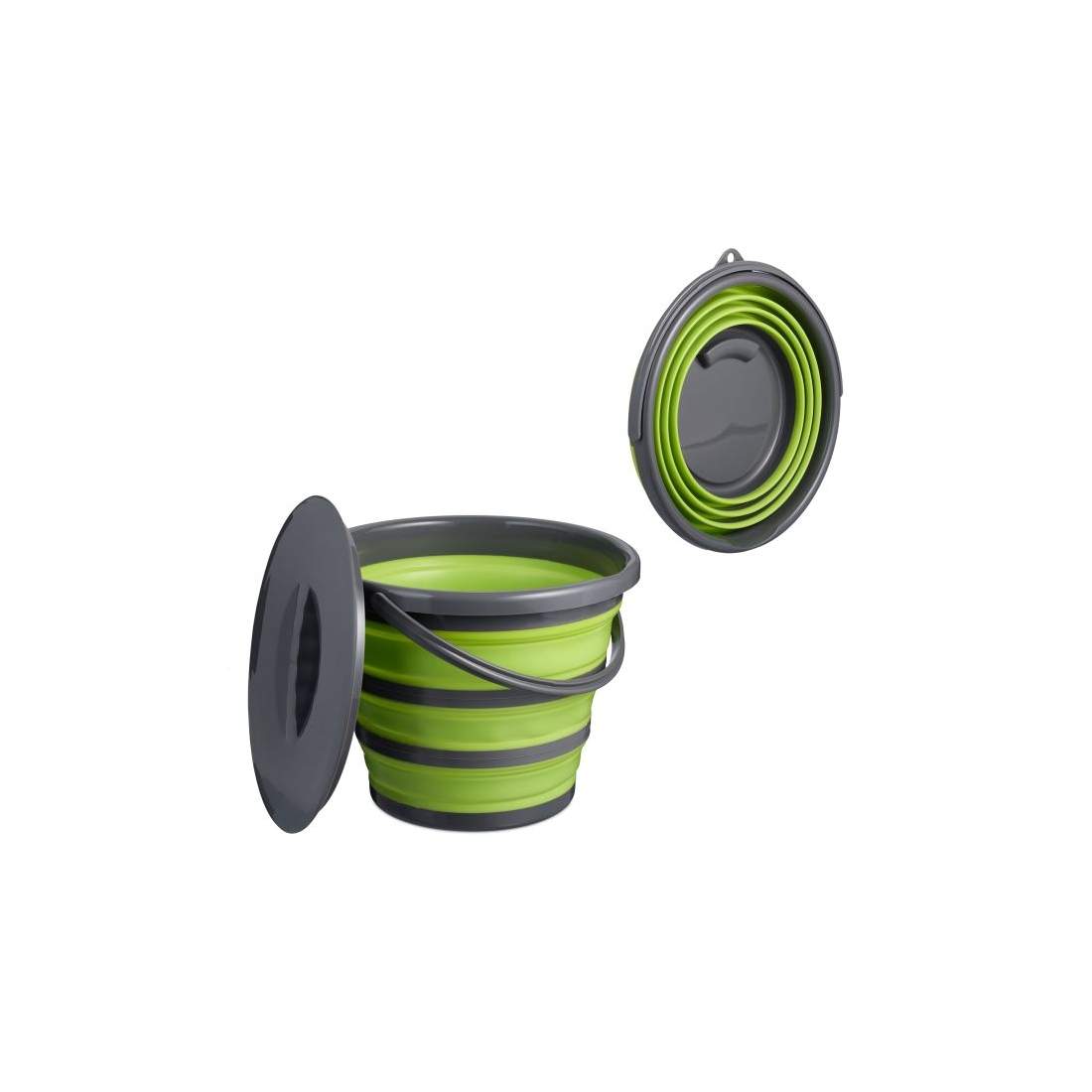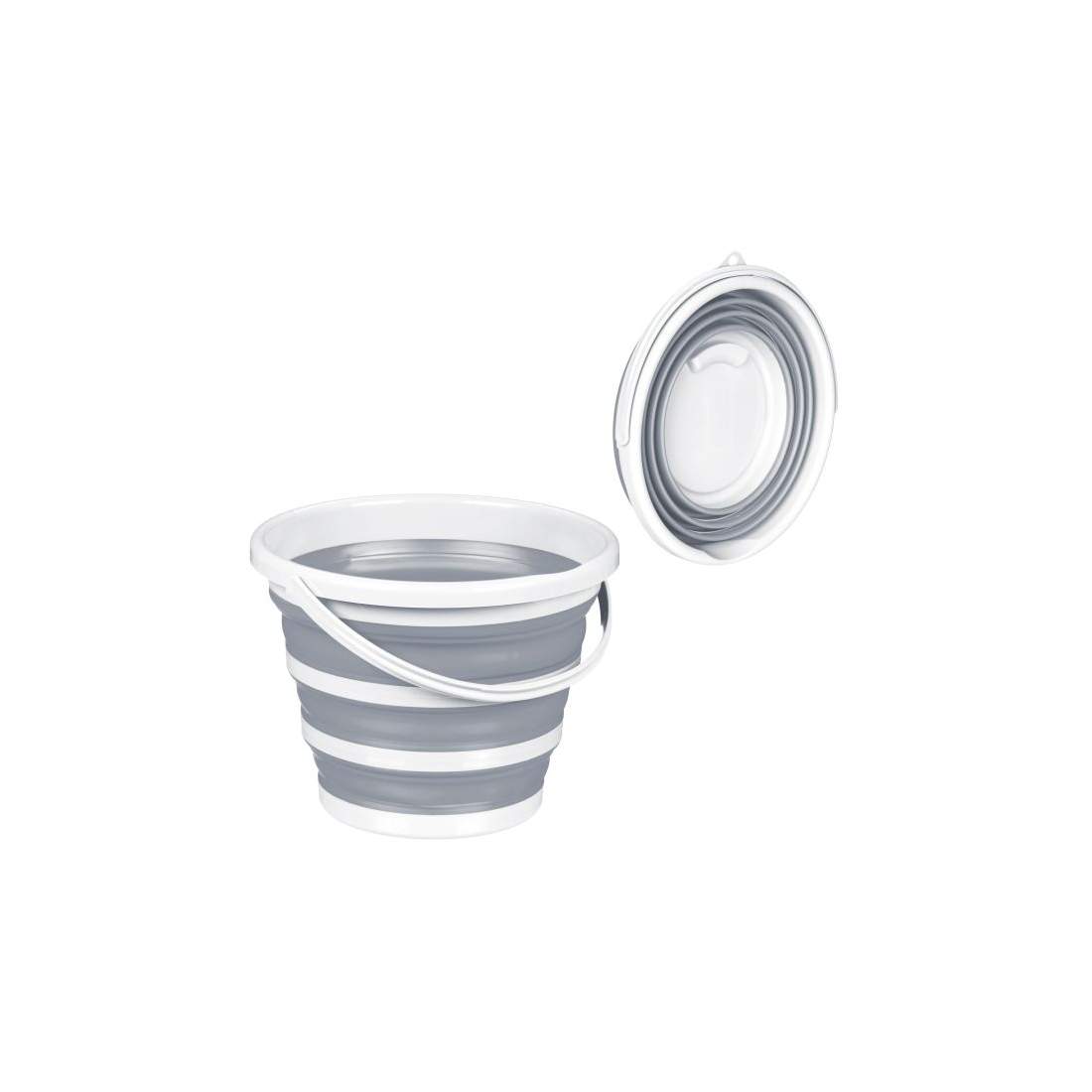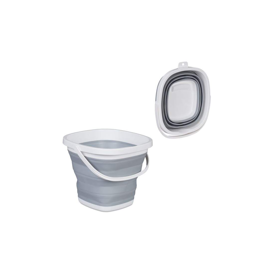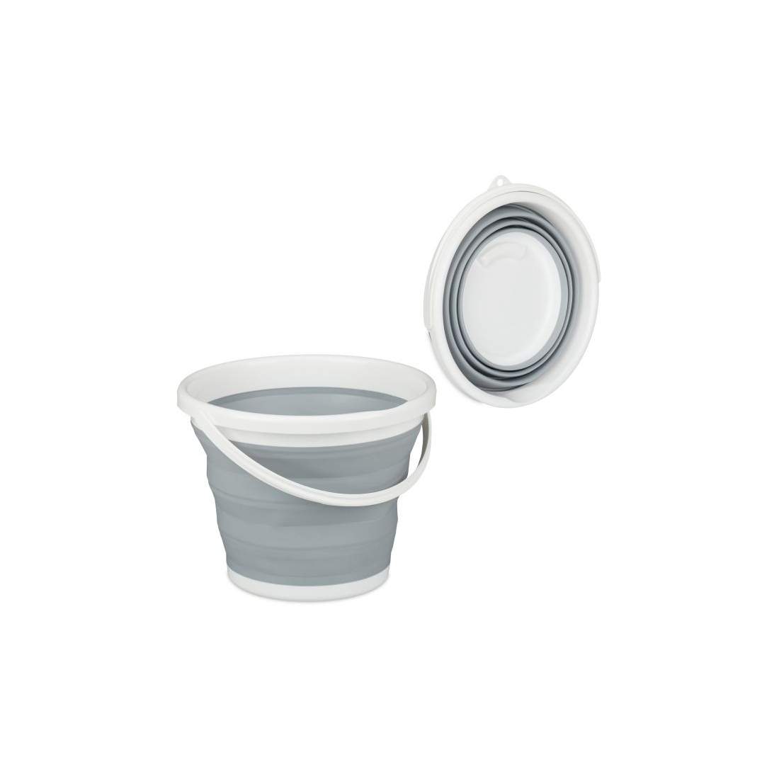 Relaxdays hopfällbar hink, 10 l moppfack, hopfällbar för bil, camping och festivaler, grå, 1 artikel