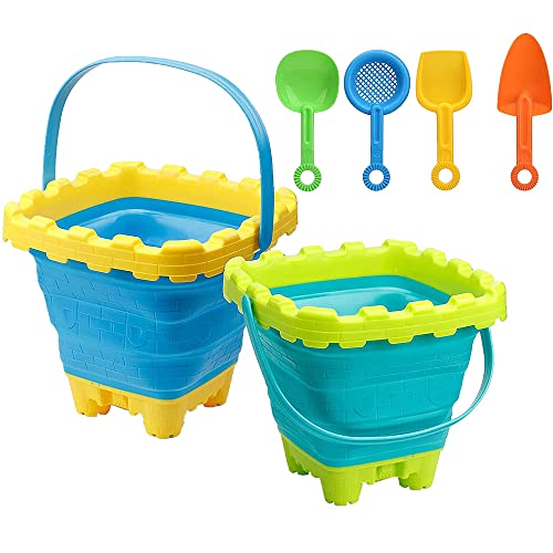 TRIXES 2-delad hopfällbar hink och spat-set – perfekt för semester – silikondesign – minimerar utrymmet i bagaget – högkvalitativ barnsemester-nödvändighet – sommargåva – 6 delar