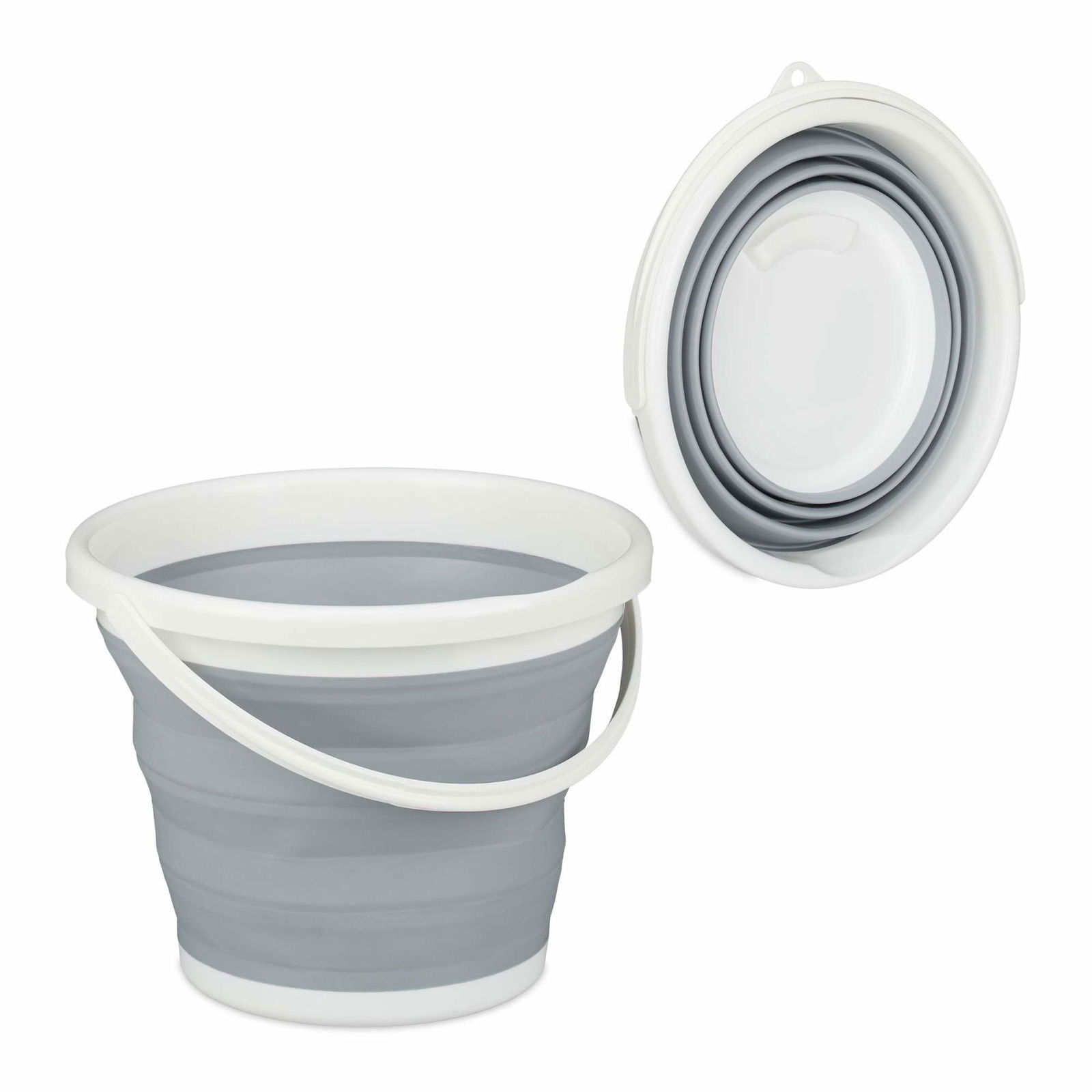 Hopfällbar hink 10 l, silikon hopfällbar hink, rund vit/grå mopphink för rengöringsverktyg, idealisk för resor och fiske, platsbesparande design av Zuvo