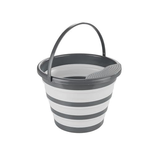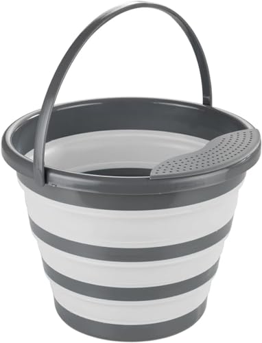 Avilia Hopfällbar hink 10 l med integrerad sil och ergonomiskt handtag, av polypropen, även perfekt lösning för resor eller camping, grå, 33 x 31,5 B x 24 H cm