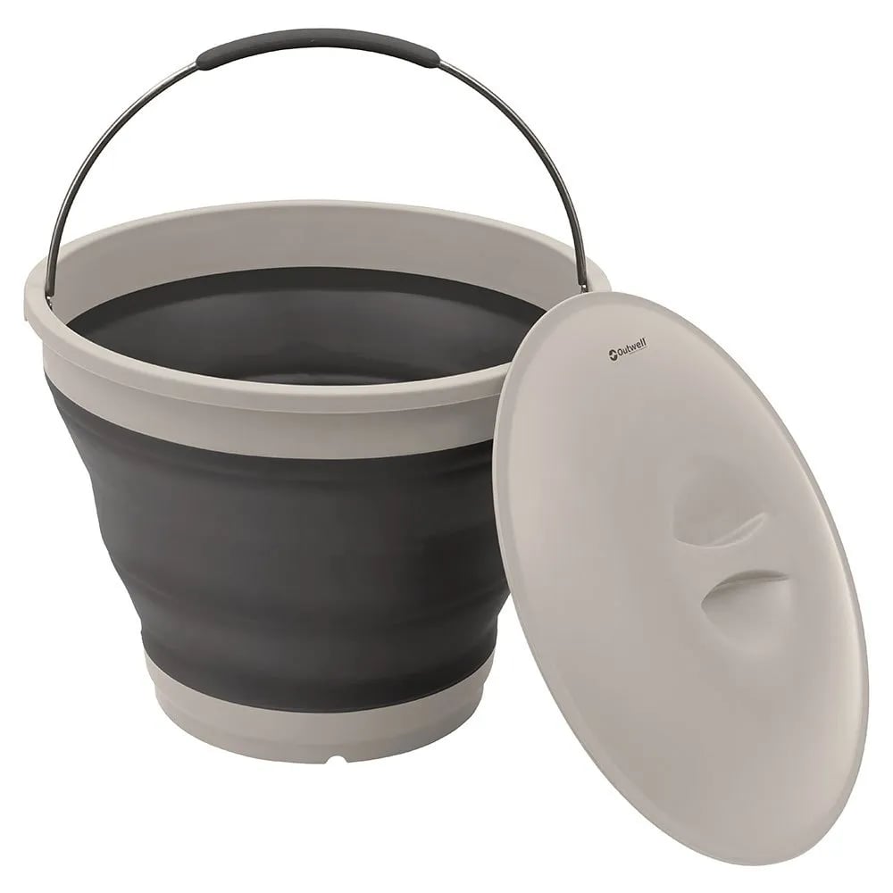 Massido rengöringshink, vikbar silikonhink, bärbar med handtag, lock, hopfällbar hushållshink, vikbar hink, camping, fiske, rengöring, 10 l, vit, grå