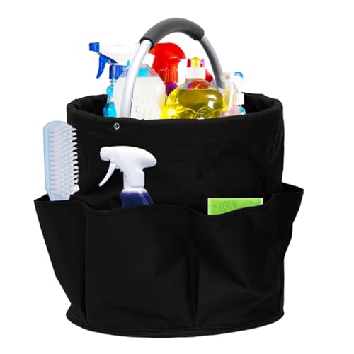 ASelected 17 L rengöringscaddie med handtag rengöring caddie organiserare, hopfällbar förvaringskorg flera fickor stor hopfällbar hink för inomhus och utomhus, lätt att rengöra och bära (svart)