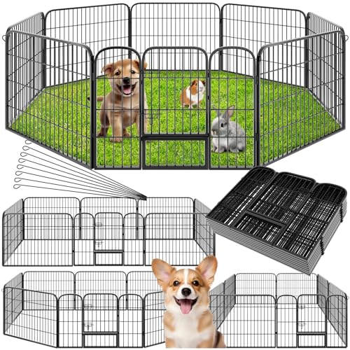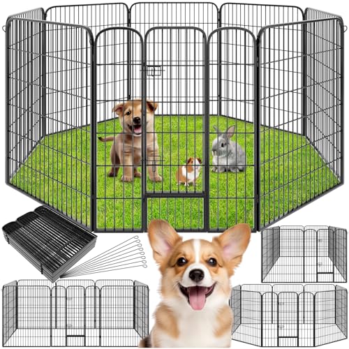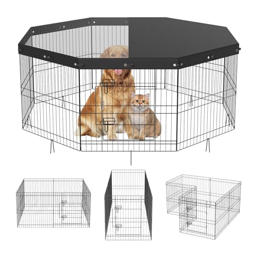 VEVOR Hundhage med topplock, 24" H 8 paneler hopfällbar hundträningshage i metall, staket för valpar med markpinnar, hundhage inomhus och utomhus för små och medelstora husdjur, för camping, trädgård