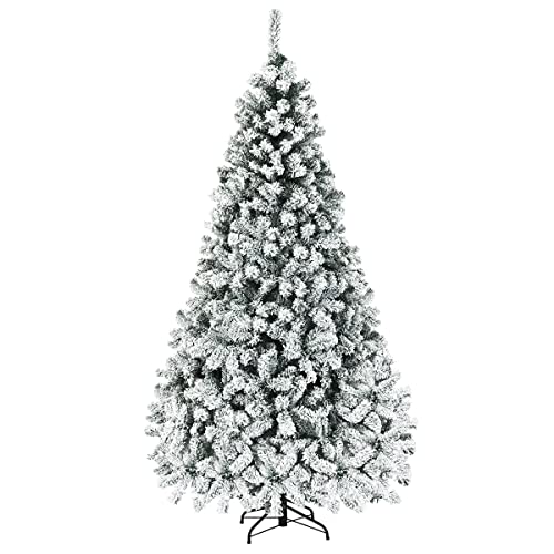KOMFOTTEU 227 cm konstgjord julgran hopfällbar snöig träd, 641 Spetsar Navidian Dekoration, Julgran med snö, metallstativ, för hem, kontor, butiker