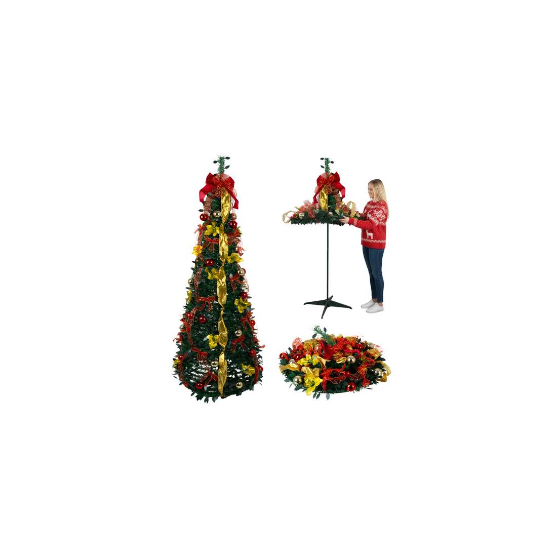 Hopfällbar 1,8 meter hög julgran med dekorationer – enkel montering