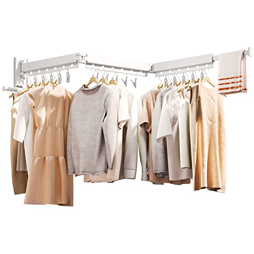 Stock Your Home Infällbart klädställ – väggmonterad hopfällbar klädhängare torkställning för tvättstuga garderobsförvaring organisation, aluminium, enkel installation, 2 ställ med stång (vit)