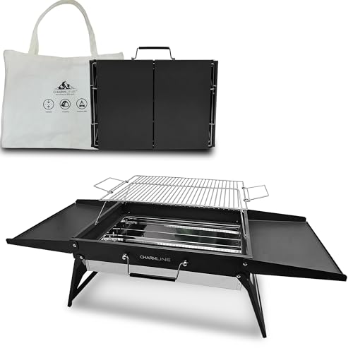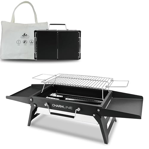 Charmline 51 x 35 cm Hopfällbar Portabel Kolgrill – Liten Campinggrill för Picknick och Utomhusbruk – Passar för Trädgårdar, Stränder, Gräsmattor och Bord – Svart