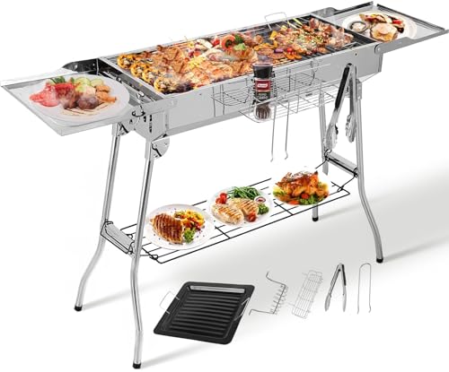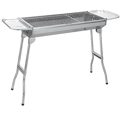 E EASTSTORM Barbecue grill liten rostfritt stål kolgrill hopfällbar grill bärbar picknickgrill bärbar för utomhus trädgård fest 54 × 21 × 17,5 cm