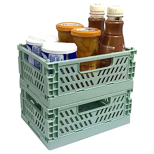 RHBHY Fällbar låda, liten, hopfällbar låda, vikbar, stabil 2 st, mini-hopfällbar korg, plast, stabil förvaringskorg, stapelbehållare, organisatör för småsaker och kosmetika (grön)