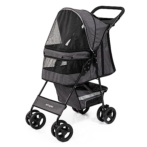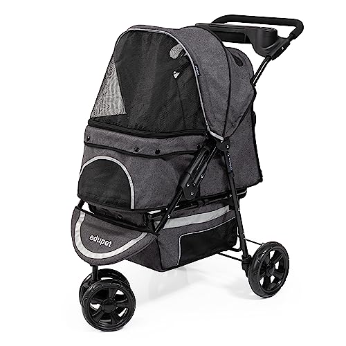 EDUPET 06601AA Hundvagn, dubbelhjul, säkerhetsbälte, extra madrass, integrerad korg, hopfällbar