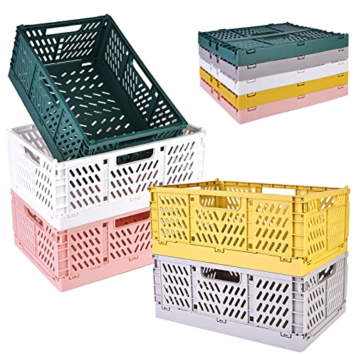Fällbar låda plast hopfällbar korg, set med 5 stycken vikbara förvaringskorgar, vikbara förvaringskorgar, för barnrum, kök, sovrum, kontor, arbetsrum, badrum (flerfärgad)