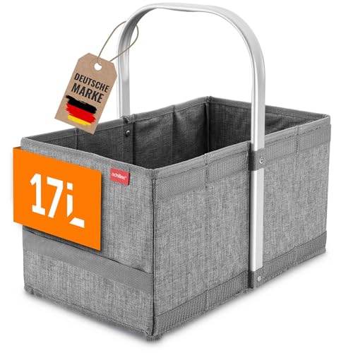 Achilles Handle-Box kundkorg med smart hopfällbart system hopfällbar korg med aluminiumhandtag blandning grå shoppingväska 40 x 24 x 20 cm