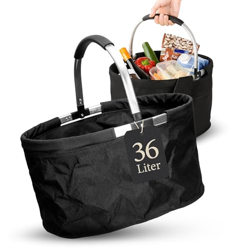 Shoppingkorg vikbar "Silandre" 36 l – presenter till kvinnor till jul – hopfällbar korg svart med gott om lagringsutrymme – presentidé för mamma – robust picknickkorg med ergonomiskt handtag när du är