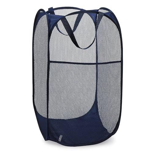 Praktisk tvätt hopfällbar nät vikbar korg 35 cm x 35 cm x 60 cm marinblå
