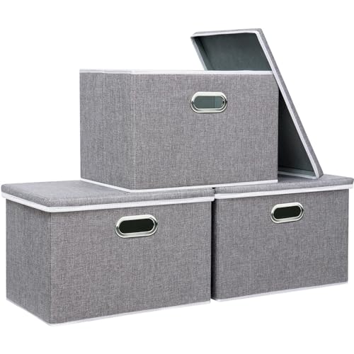 Yawinhe Förvaringslåda med lock 3-pack, hopfällbar klädhylla korg leksakslåda, för att organisera kläder, 45x30x30 cm, Grå, SNK023GX-3