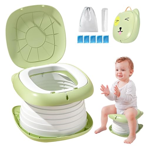 Bärbar Potta för Småbarnsresor, Hopfällbar Toalettsits för Småbarn Resepotta Träningstoalett för Pojkflickor, Mobil Hopfällbar Toalett för Bil, Camping, Turism, Utomhus, Inomhus (Grön)