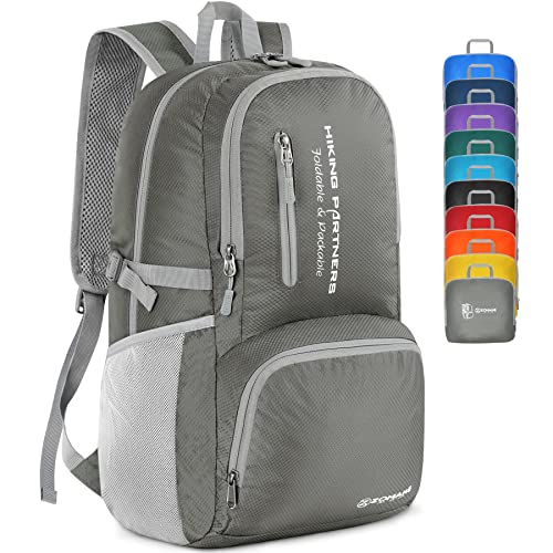 ZOMAKE 25L Ultra Lightweight Packable Backpack, Foldable Hiking Backpacks Water Resistant Small Folding Daypack for Travel(Light Gray)