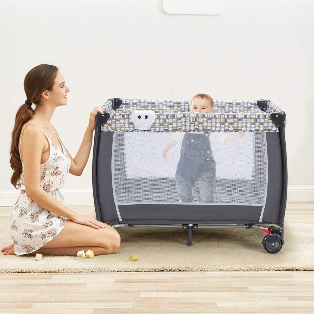 3 i 1 hopfällbar resesäng & skötbord & lekhage med avtagbart myggnät