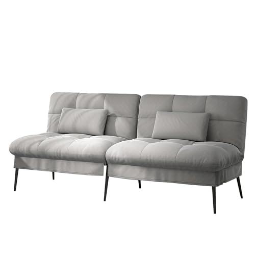 COMHOMA Soffa bäddsoffa med sovfunktion, överdrag futon hopfällbar soffa, bäddsoffa, hörnsoffa, gästsäng, 3-sitsig soffa, med justerbart ryggstöd av Grå tyg