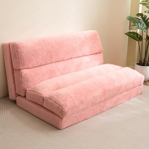 MAXYOYO Sittsäcksbädd, hopfällbar bäddsoffa, golvmadrass för vuxna, extra tjock 6-vägs vikbar golvsoffa, golvsoffa för sovrum, vardagsrum, rosa, 135 x 240 cm