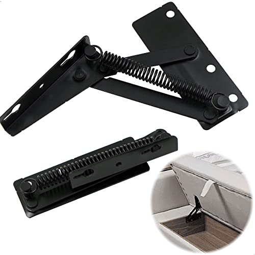 Lyftbeslag, klaffbeslag, fjäderklaffhållare, lyftgångjärn, – klaffstöd, gångjärn, skåplucka, topp, dörrgångjärn för hopfällbar soffa, hopfällbar säng, lockstöd, svart, 2 stycken