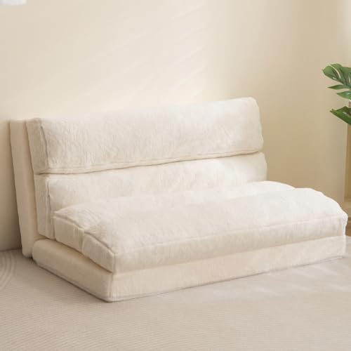 MAXYOYO Sittsäcksbädd, hopfällbar bäddsoffa, golvmadrass för vuxna, extra tjock 6-vägs vikbar golvsoffa, golvsoffa för sovrum, vardagsrum, beige, 100 x 240 cm