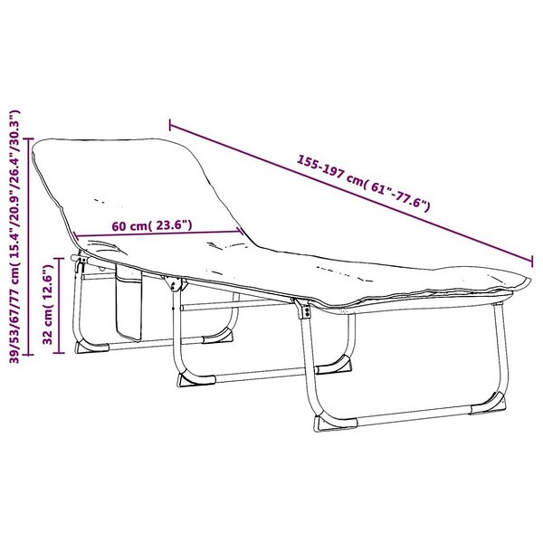 Hopfällbar solsäng med huvudkudde pulverlackerat stål svart
