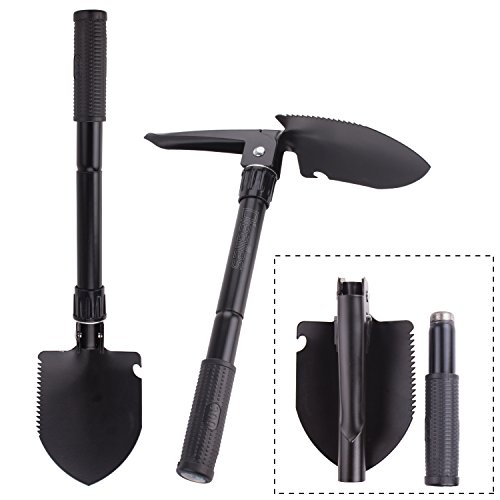 AugTouf militär hopfällbar campingspade, offroad överlevnad hög kolstål spade (22,8 tum - oliv)