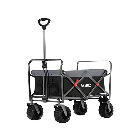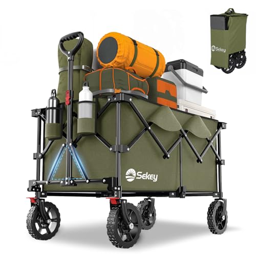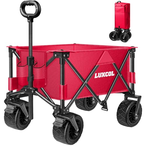 LUXCOL Hopfällbar hopfällbar vagn, kraftig verktygsvagn för sand med stora hjul, justerbara handtag och dryckeshållare för shopping, camping, trädgård och utomhus
