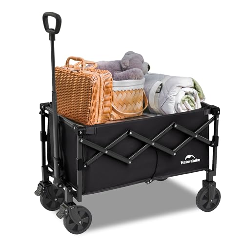 Naturehike Handvagn hopfällbar vagn, lastkapacitet 120 kg extra stor kapacitet utomhus vikbar verktygslåda med justerbar vagn för camping, shopping, strand (svart, XL)