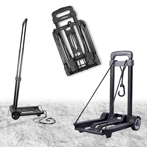 Vsaikeo Liten hopfällbar bagagevagn med 2 hjul, lätt vikbar bagagevagn, hopfällbar vagn, bärbar vagn för flygplats, resor, användning vid flytt