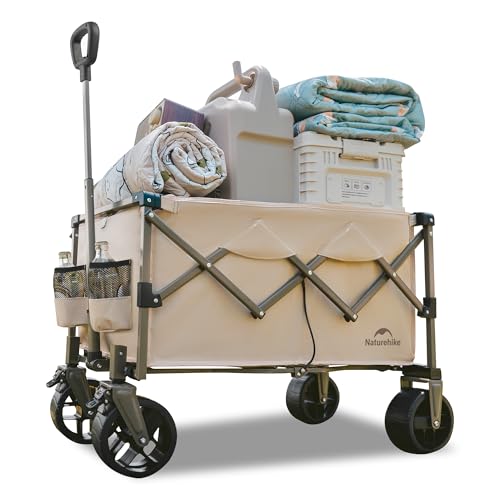 Naturehike handvagn hopfällbar vagn, lastkapacitet 120 kg extra stor kapacitet utomhus vikbar verktygslåda med justerbar vagn för camping, shopping, strand (brun, L)