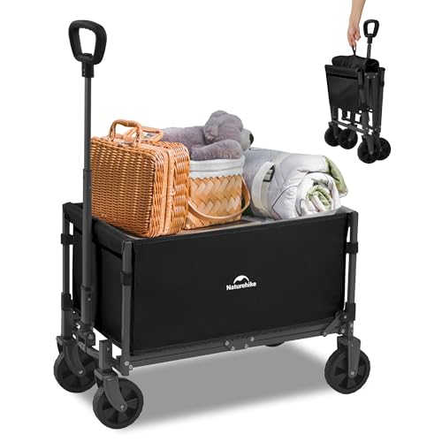 Naturehike Handvagn hopfällbar vagn, lastkapacitet 120 kg extra stor kapacitet utomhus vikbar verktygslåda med justerbar vagn för camping, shopping, strand, svart
