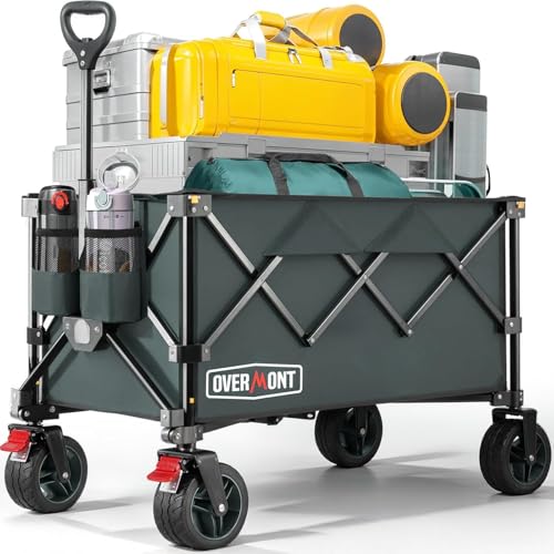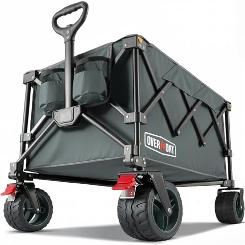 Overmont hopfällbar festivalvagn – 150 kg kapacitet hopfällbar vagn för camping strand trädgård picknick shopping, slitstark vagn med justerbart handtag och terränghjul och broms, grå